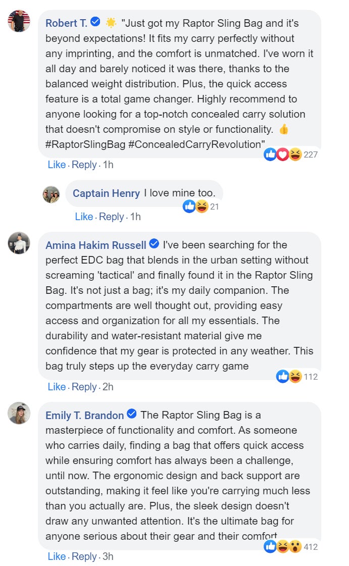 The feedback was overwhelmingly positive. These professionals, who know a thing or two about carrying gear comfortably, really liked the Raptor Sling Bag. They praised how it combines the ability to carry concealed with real comfort. It's designed to be easy on your back and shoulders, making it a great choice for everyday use, even for those who have had discomfort with other bags in the past.